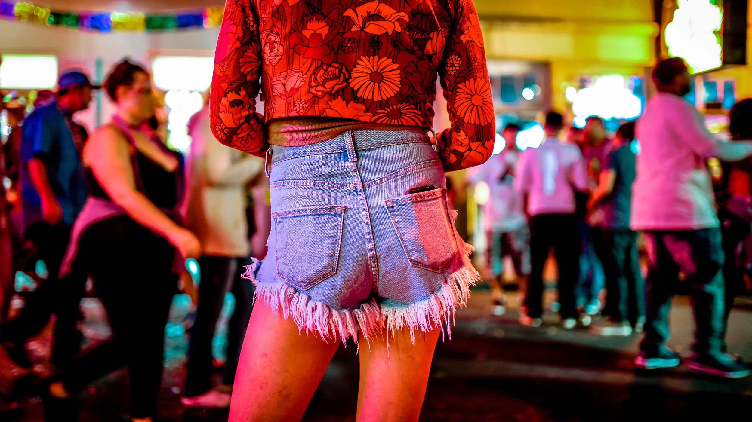 Inspired by night scenes from early-2000s cinema and modern youth culture imagery. The environment becomes part of the subject's identity: chaotic, colorful, and electric.