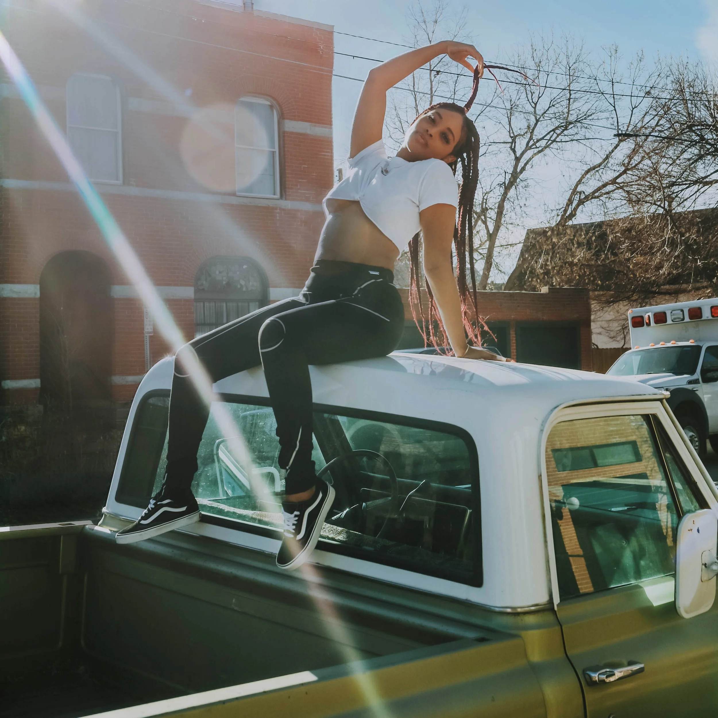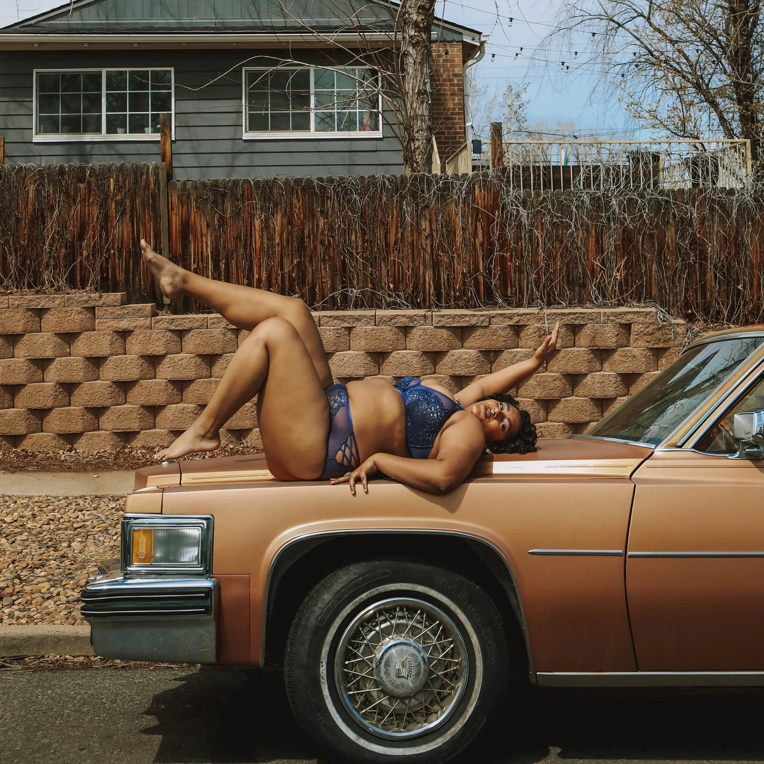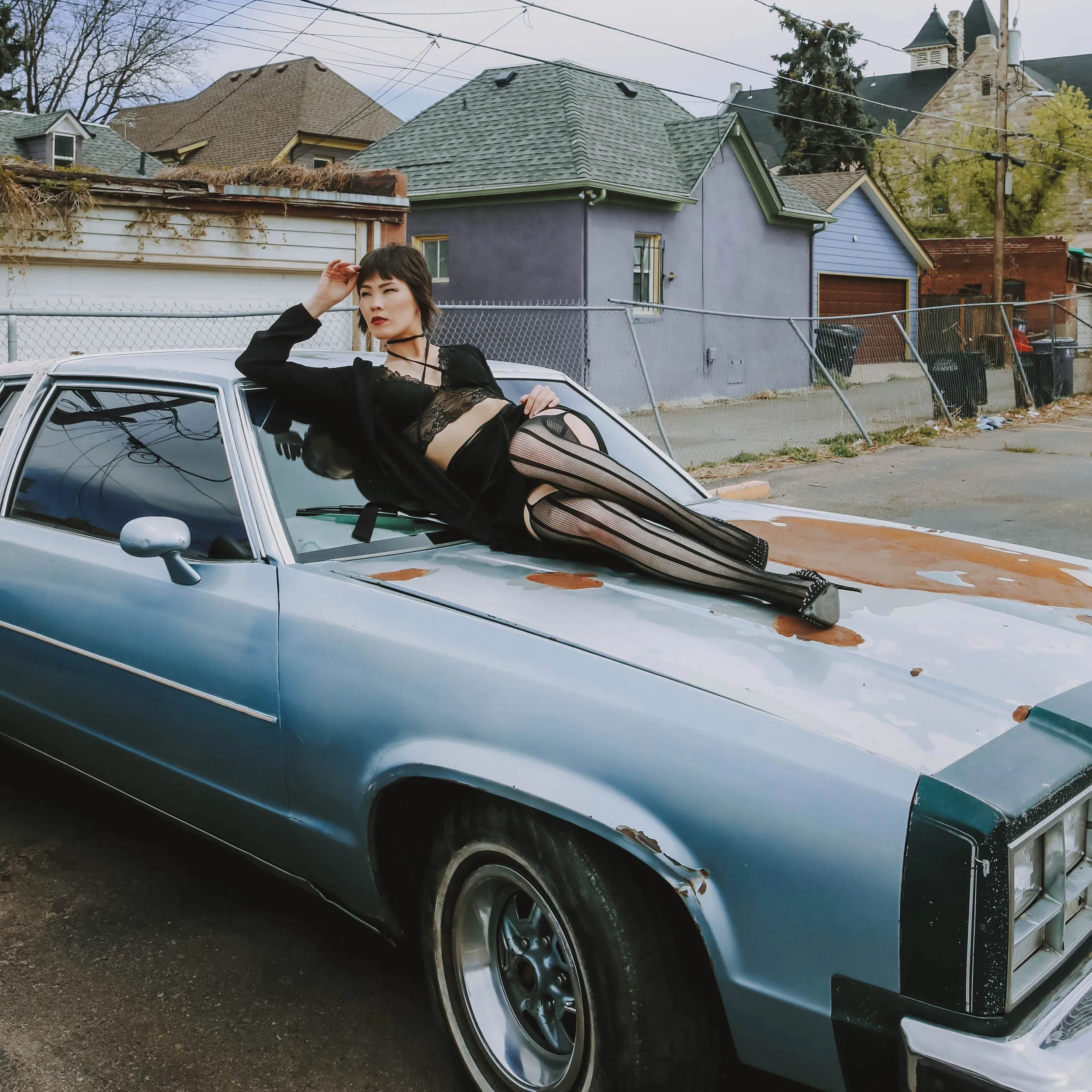 explores the contrast between polished beauty and the imperfect environments of everyday American neighborhoods. The project places confident, expressive women against worn vehicles, quiet suburban streets, and utilitarian spaces like garages, parking lots, residential blocks - transforming overlooked environments into editorial stages.